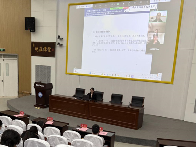 3月11日,我校举办2025年美国鲍尔州立大学本硕联合培养项目宣讲会。美国鲍尔州立大学项目负责人苏珊·罗、新闻与传播策略学院李通博士,中教国际教育交流中心项目负责人王岩,新闻传播学院党委书记陈长伟、学工办主任周琰、国际合作与交流处相关领导及新闻传播学院近300名学生参加宣讲会。