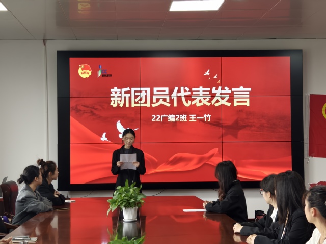 5月15日中午,新闻传播学院在理科组团D楼413会议室举行了“以青春之名,赴时代之约”2025年上半年新团员入团仪式,学院党委副书记张颖、学生党支部书记周琰、团委书记徐宇瞳、13位新团员及团委组织部工作人员出席仪式,共同见证青年学子加入中国共产主义青年团的光荣时刻。