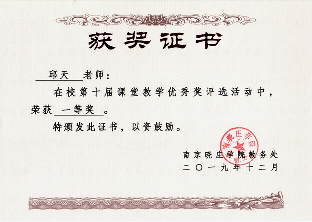 校第十届课堂教学优秀奖比赛中,我院邱天老师经过学