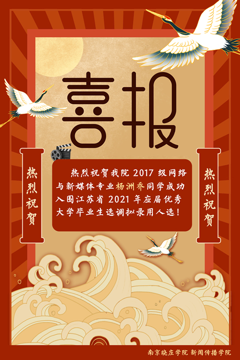 我院杨洲乔同学成功入围江苏省2021年选调生