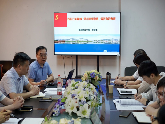 根据学校开展党史学习教育的部署要求,6月29日下午,副校长贾创雄教授在莫愁校区2319会议室为新闻传播学院讲授题为“践行行知精神 坚守职业道德 做四有好老师”的党史学习教育专题党课,新闻传播学院班子成员、支部书记、科室主任、专业负责人、教研室主任和师生党员参加了本次党课学习,报告会由新闻传播学院党总支书记陈长伟同志主持。