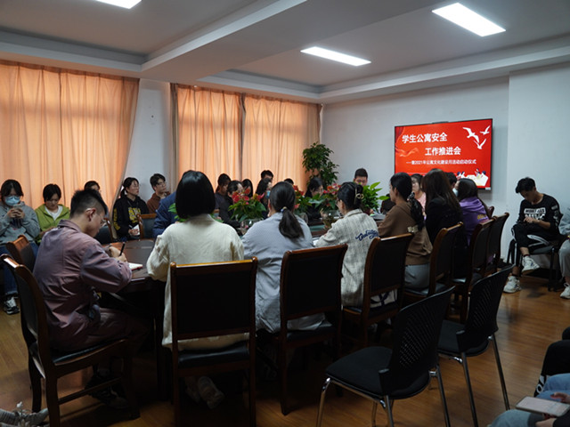 切实加强学生公寓安全管理,增强学生的安全意识和自我防范常识,消除公寓安全隐患,推进公寓文化建设,10月26日下午,新闻传播学院在2号楼319会议室召开学生公寓安全工作推进会暨2021年公寓文化建设月活动启动仪式。新闻传播学院党总支书记陈长伟、物业主任蒋小芳、宿舍站长陶伟、生活管理部负责人、各年级班长及安全员参加了会议,本次会议由辅导员老师唐秀美主持。