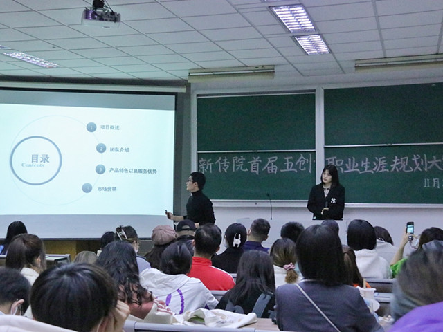 本次比赛历时一个月,经过宣讲、初赛选拔等环节,最终评选出职业生涯规划12名选手、“五创”项目13组选手进入决赛。选手们通过PPT展示、现场陈述和答辩展示各自风采,评委老师们针对个人生涯规划的科学性和创新创业项目方案的可行性、创新性、推广性等维度向选手提问并给予建议。