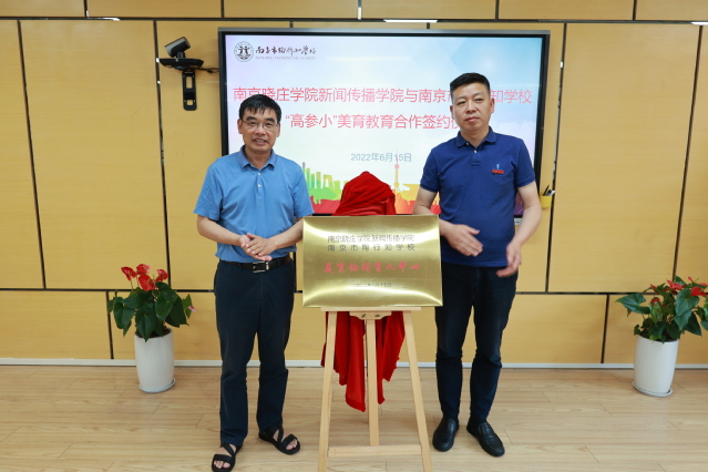 为进一步贯彻落实党中央全面加强新时代美育教育指导工作的重要论述,深化协同美育教育,推进美育协同育人中心基地建设,弘扬行知思想,发挥校校资源共享、优势互补,打造南京市教育特色品牌,615日下午,我校新闻传播学院与南京市陶行知学校“高参小”美育教育合作签约仪式在南京市陶行知学校举行,“美育协同育人中心”正式签约、揭牌。新传院负责人与陶行知学校班子成员、教师代表参加了此次活动。仪式由南京市陶行知学校副校长刘浩主持。