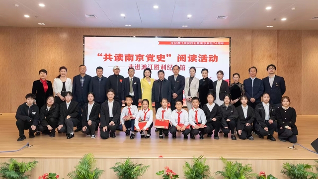 随后,杨正雅等10位同学前往南京党史馆参加2023“共读南京党史”阅读计划启动仪式以及主题阅读活动。启动仪式上,市委党史办主任徐春发表重要讲话,鼓励更多的人共读南京党史,了解不朽精神,做伟大建党精神的弘扬者、习近平新时代中国特色社会主义思想的践行者、赓续红色血脉的传承者。启动仪式后,为庆祝渡江战役胜利暨南京解放74周年,以“重温渡江战役 感悟人民力量”为主题的”共读南京党史”阅读会,在南京晓庄学院学生齐诵毛泽东《七律 • 人民解放军占领南京》中拉开序幕。随后的阅读活动围绕《南京解放史》《守护渡江胜利的记忆——“京电号”小火轮修复保护工程实录》《1949决战京沪杭——渡江战役胜利纪实》三本书开展导读、领读、共读等环节。尾声部分,渡江胜利纪念馆员工集体诵读在三浦战役中为解放南京牺牲的部分解放军将士名单,激荡人心,进一步凝聚爱国奋进力量。