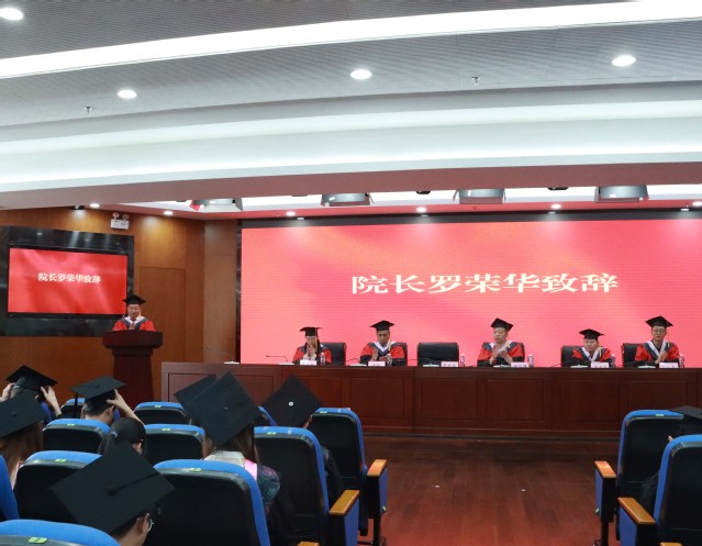 典礼在庄严的国歌中拉开序幕,院长罗荣华代表学院向毕业生表示热烈祝贺,向老师们表示衷心感谢,并寄语毕业生:一要独立生存,向上而生;二要铁肩担道义,妙手著文章;三要懂得感恩,向善而行。教师代表周海娟深情表达了对毕业生们的期望和祝福。随后,优秀毕业生代表钱平平同学向老师和同学表达感激之情,对自己的未来表示出无限的期许。