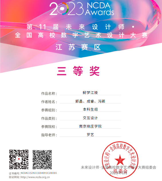 近日,NCDA十一届未来设计师•全国高校数字艺术设计大赛公布了比赛结果。我校新闻传播学院的学生作品获得国赛二等奖、省奖二等奖及三等奖等多个奖项。罗艺老师获得优秀指导教师。本次提交的作品涉及非命题赛道的交互设计、乡村产品设计、国潮·非遗设计、纪录片、人文纪实、微电影/短视频等作品类型。