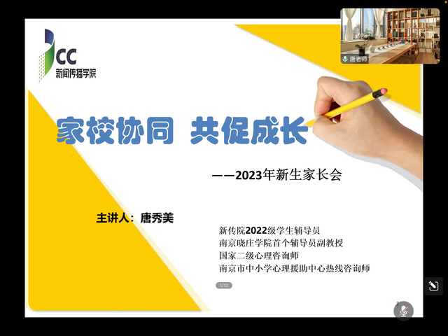 为加强学院与新生家长的沟通交流,呼吁家长关注、关爱学生身心健康,与学院形成家校育人合力,2023年9月5日晚7点,新闻传播学院线上举办2023年新生家长视频会。院领导、心理辅导员、年级辅导员以及学院2023年级、2021级广播电视学转本班共250名新生家长参加了此次会议。
