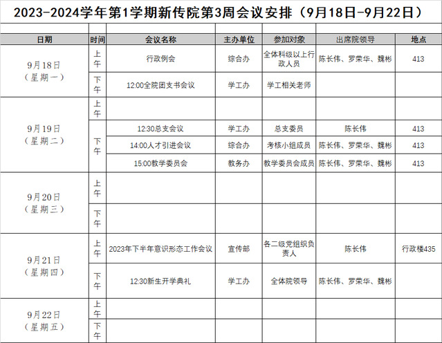 2023-2024学年第1学期新传院第3周会议安排(9月18日-9月22日)