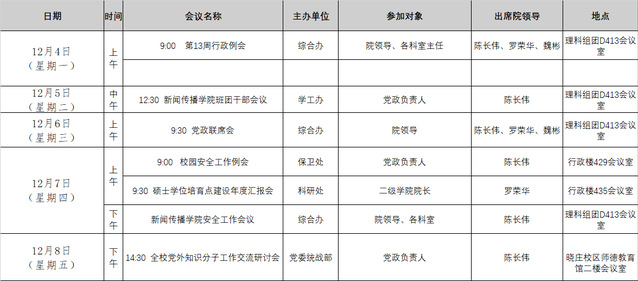 2023-2024学年第1学期新传院第14周会议安排(12月4日-12月8日)