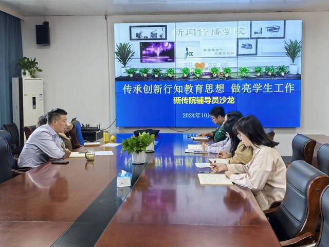 10月9日,新闻传播学院召开第五期辅导员工作坊,以“传承陶行知教育思想,打造学生工作亮点”为主题开展研讨,学院党委书记、副书记和全体辅导员参加了本次活动。