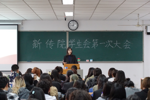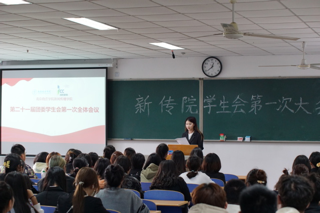 为增强新一届团委学生会凝聚力、战斗力,10月8日中午,新闻传播学院第二十一届团委学生会第一次全体大会在行知组团E楼102教室顺利举办。学院团委书记徐宇瞳、第二十届团委学生会代表、第二十一届团委学生会全体成员参与大会,现任学生会主席吴荟枝担任主持。