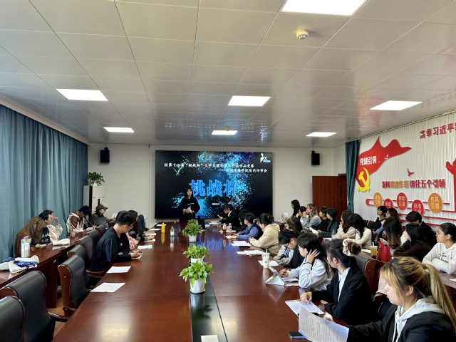 为营造大学生课外学术科技的文化氛围,进一步引导学生努力培养科学精神和创新实践能力,为学校“挑战杯”赛事输送优秀作品,11月14日中午,新闻传播学院在理科组团D413会议室举办校第十二届“挑战杯”大学生课外学术科技作品竞赛院内评审会,学院党委副书记昃静、团委书记徐宇瞳、院内评委、部分团队指导老师及全体参赛成员参与。